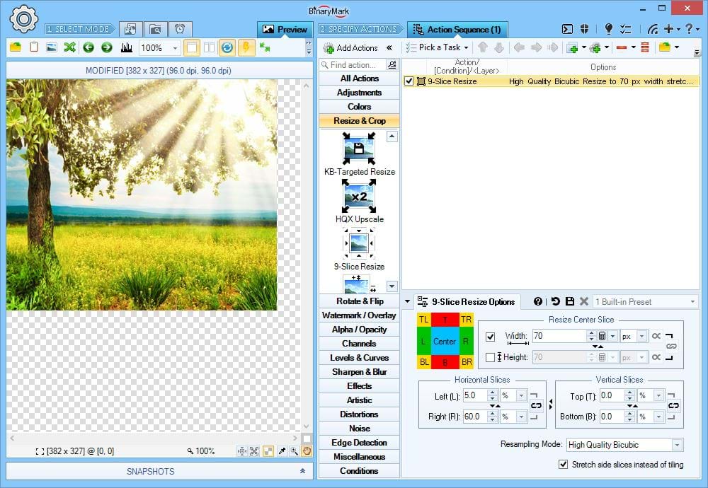 With built-in Preview mode you can easily preview how the processed images will look. Preview mode has many features like: