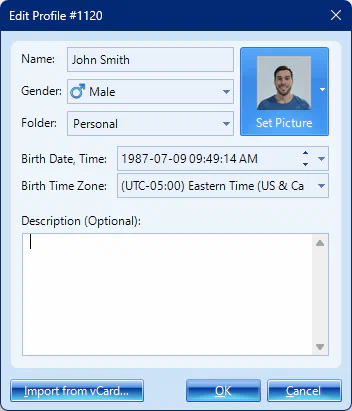 - NEWCreate Profiles from VCF vCards: You can create profiles from VCF vCards, which are commonly used for storing contact information on mobile devices and in email clients, thus making it even easier to add all your family and friends into the program.
